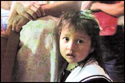 فتاة صغيرة تقف الى جانب الاشخاص المتضررين من الفيضانات وذلك لاستلام وجبة في ملجأ بمدينة كراكاس, الاف الناس قتلوا واصيبوا في الفيضانات المدمرة الاخيرة.