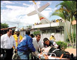 جندي بوليفي يمشي فوق حطام طائرة تابعة للقوات الجوية البوليفية من طراز سي 130 التي وقع لها حادث باقليم تشاباري المزروع بنبات الكوكا، وقد هوت الطائرة عند اقلاعها وبداخلها 31 شخصا مما ادى الى مصرع خمسة اشخاص واصابة 25 بجروح.