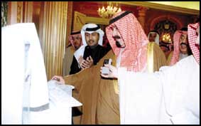 اثر ذلك افتتح صاحب السمو الملكي الأمير عبدالله بن عبدالعزيز موقع المؤسسة على شبكة الانترنت بالضغط على زر بدء التشغيل .