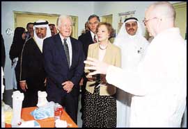 أثناء زيارته لجمعية الأطفال المعوقين بجدة الرئيس الأمريكي الأسبق كارتر لـ الجزيرة العالم يشيد بالدور الفعال لخادم الحرمين وسمو ولي العهد |