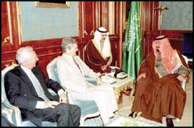 وحضر الاستقبال معالي المستشار في ديوان سمو ولي العهد الأستاذ عبدالمحسن بن عبدالعزيز التويجري وسفير الولايات المتحدة الامريكية لدى المملكة وايتش فاولر.