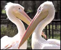 اثنان من طيور البجع يستمتعان بالدفء في يوم مشمس في حديقة حيوان وارسو في وسط بولندا على عكس المناطق الجنوبية البولندية التي تشهد امطارا غزيرة في الوقت الراهن رغم دخول فصل الربيع.
