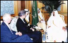وقد نقل خلال اللقاء تحيات وتقدير فخامة الرئيس بيل كلينتون رئيس الولايات المتحدة الأمريكية لصاحب السمو الملكي الامير عبدالله بن عبدالعزيز حفظه الله.