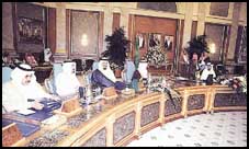 رأس صاحب السمو الملكي الأمير عبدالله بن عبدالعزيز ولي العهد ونائب رئيس مجلس الوزراء ورئيس الحرس الوطني الجلسة التي عقدها مجلس الوزراء بعد ظهر امس الاثنين في قصر السلام بمحافظة جدة.