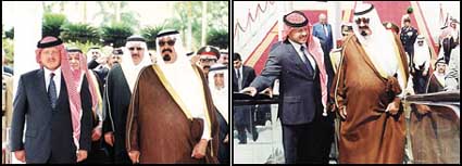 بعد ذلك توجه صاحب السموالملكي الأمير عبدالله بن عبدالعزيز وأخوه جلالة الملك عبدالله الثاني بن الحسين الى منصة الشرف حيث عزف السلامان الوطنيان للمملكة العربية السعودية والمملكة الأردنية الهاشمية الشقيقة ثم استعرضا حرس الشرف.