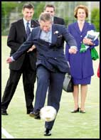 أمير ويلز وولي عهد بريطانيا الأمير تشارلز يستمتع بركل الكرة مع الأطفال في أدنبرة بعد قضاء أسبوع هناك حيث زار مشروع نادي كرة القدم الايرلندي الذي تموله مؤسسته.