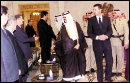 من جهة أخرى استقبل صاحب السمو الملكي الأمير عبدالله بن عبدالعزيز ولي العهد نائب رئيس مجلس الوزراء رئيس الحرس الوطني في مقر اقامة سموه بقصر تشرين في دمشق أمس معالي وزيرة الخارجية الأمريكية مادلين أولبرايت والوفد المرافق لها.