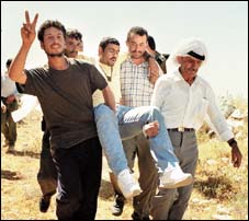 وفي نبأ لاحق أمس أفاد مراسل وكالة فرانس برس ان أربعة فلسطينيين اصيبوا بجروح خلال مواجهات اندلعت بين الجنود الاسرائيليين وعشرات من المتظاهرين الفلسطينيين الذين كانوا يحاولون استعادة أراضي استولى عليها المستوطنون اليهود.