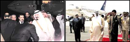 وعند سلم الطائرة عانق دولة رئيس الوزراء الدكتور عاطف عبيد صاحب السمو الملكي الأمير عبدالله بن عبدالعزيز مرحباً به ومرافقيه في بلده الثاني جمهورية مصر العربية كما صافح سموه معالي وزير الإعلام صفوت الشريف ومعالي وزير السياحة الدكتور ممدوح البلتاجي ومعالي رئيس ديوان رئاسة الجمهورية الدكتور زكريا عزمي وعدد من المسؤولين واعضاء السفارة السعودية في القاهرة.