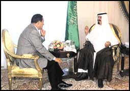 استقبل صاحب السمو الملكي الأمير عبدالله بن عبدالعزيز ولي العهد ونائب رئيس مجلس الوزراء ورئيس الحرس الوطني أخاه فخامة الرئيس محمد حسني مبارك رئيس جمهورية مصر العربية الشقيقة وذلك بمقر إقامة سموه بشرم الشيخ أمس.