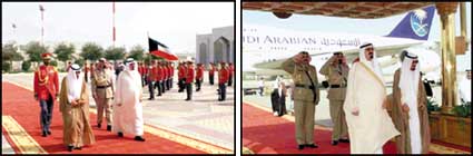 اثر ذلك صحب سمو أمير دولة الكويت أخاه صاحب السمو الملكي الأمير عبدالله بن عبدالعزيز إلى منصة الشرف حيث عزف السلامان الوطنيان للمملكة العربية السعودية ودولة الكويت ثم استعرضا حرس الشرف.