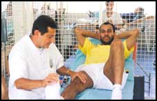 كان لابد ان استحمل كل شيء إذا أردت ان اعود للعب مرة اخرى ولا انكر ان وجود عائلتي معي ازال نصف الهم والمشقة حيث كان لوجود العائلة الى جانبي دور في تخطي اصعب الأوقات خاصة في الشهرين الاولين اللذين كان العلاج فيهما على فترتين صباحا ومساء حيث كنت اغادر 8 صباحا واعود 12 بعد الظهر ثم من 4 عصرا الى 8 مساء بعدها اعود الى النوم مباشرة من التعب وبعد مرور 60 يوما تقلصت الفترة الى فترة واحدة في اليوم من 3 عصرا الى 7 مساء الى ان انتهت فترة العلاج,.