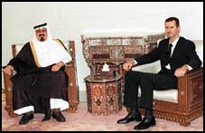 وبحث سمو ولي العهد والرئيس السوري في اجتماع عقداه بحضور الوفد السعودي المرافق لسمو ولي العهد ونائبي الرئيس السوري عبدالحليم خدام وزهير مشارقة ورئيس الوزراء السوري محمد مصطفى ميرو ووزير الخارجية السوري فاروق الشرع، بحثا العلاقات المتميزة بين البلدين الشقيقين وسبل تعزيزها على كافة الأصعدة كما استعرضا قضية الشرق الأوسط والأراضي العربية المحتلة وسبل استعادتها.