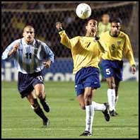 ولم ينل الهدف من عزيمة الارجنتينيين الذين دخلوا اجواء المباراة تدريجيا بفضل تحركات الفنان ارييل اورتيغا والنشيط خوان سيباستيان فيرون، بيد ان الدفاع البرازيلي راقب جيدا المهاجمين هرنان كريسبو وكلاويدو لوبيز فشل حركتهما.