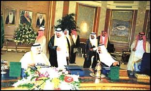 رأس خادم الحرمين الشريفين الملك فهد بن عبدالعزيز آل سعود حفظه الله الجلسة التي عقدها مجلس الوزراء بعد ظهر امس الاثنين في قصر السلام بمحافظة جدة.