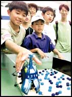 طفل ياباني يلتقط حشرته الآلية التي صنعها بنفسه ليشارك بها في فعاليات مهرجان الروبوت حيث يتنافس المئات من المخترعين الصغار لعرض ما صنعوه ويفوز صاحب الاختراع الأفضل بالجائزة الكبرى.