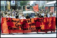 150 متظاهرا في مسيرة ضد الموجه النازية الجديدة الارهابية والتي تعتبر مسؤولة عن عدد من اعمال العنف التي حدثت مؤخرا في المانيا ضد المدنيين والتي راح ضحيتها عدد من الأطفال والأجانب.