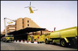 نفذ الدفاع المدني بمنطقة الرياض صباح امس خطة فرضية حريق وهمي بفندق الانتركونتيننتال بالرياض، وتعد هذه الخطة اكبر خطة فرضية قام بها الدفاع المدني خلال هذا العام حيث شاركت طائرتا اخلاء وفرق من العليا والناصرية والوشم,واوضح مدير عام الدفاع المدني اللواء سعد التويجري لالجزيرة ان رجال الدفاع المدني بمنطقة الرياض بذلوا جهودا جبارة وقد لوحظ ان هناك بعض السلبيات البسيطة وسوف يتم ان شاء الله تلافيها سواء في الخطط المستقبلية او في الحوادث الحقيقية.