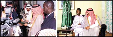 وكان في استقبال سموه بمقر السفارة سفير خادم الحرمين الشريفين لدى السنغال احمد بن محمد بياري.