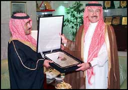 وفي نهاية اللقاء قدم نائب رئيس مجلس ادارة نادي الشباب درع النادي هدية لسموه بهذه المناسبة.
