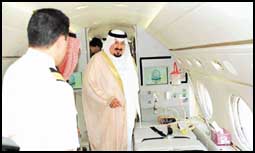 دشن صاحب السمو الملكي الأمير سلطان بن عبدالعزيز النائب الثاني لرئيس مجلس الوزراء ووزير الدفاع والطيران والمفتش العام بعد ظهر أمس بمطار الملك عبدالعزيز الدولي بجدة طائرة الاخلاء الطبي الجوي الجديدة من نوع ال, جي 5 التابعة للخدمات الطبية للقوات المسلحة والتي تم استلامها حديثاً.