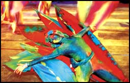 أحد المشاركين في حفل افتاح بطولة الألعاب الأولمبية في سيدني يرتدي الملابس الملونة أثناء تأدية بروفات حفل الافتتاح الذي سينطلق غداً .