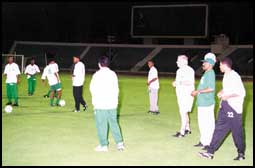 كما واصل المنتخب السعودي تدريباته الصباحية والمسائية حيث واصل التدريب صباح امس في صالة الحديد شارك في ذلك جميع اللاعبين عدا الحارس الدولي محمد الدعيع الذي اكتفى بالتمرين على الدراجة الثابتة وكذلك المدفعجي عبدالله الجمعان الذي تعوّل عليه الجماهير السعودية في هز شباك فرق آسيا الذي اجرى تمارين طبية خاصة باشراف طبيب المنتخب د, جمال.