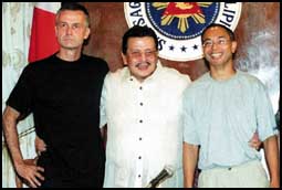وبدا على جان جاك لو جاريك 46 عاما ورولان مادورا 49 عاما وهما يتحدثان عن محنتهما للصحافة انهما بخير الا انهما متوتران, وكان الاثنان يجلسان جنبا لجنب مع الرئيس الفلبيني جوزيف استرادا الذي نال مساندة سياسية ضخمة بعد نجاة الرهينتين.
