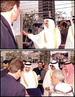بعد ذلك قام صاحب السمو الملكي الأمير نواف بن عبدالعزيز ورئيس بلدية ساو باولو السيد سيلسوبيتا بإزاحة الستار عن اللوحة التذكارية التي تحمل اسم ميدان جلالة الملك عبدالعزيز .