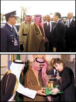 ثم قدم سمو ولي العهد هدية لنائبة حاكم بيونس ايرس باسم مدينة الرياض العاصمة تمثل مجسما لقلعة اثرية تقبلتها نائبة الحاكم شاكرة لسموه هذه اللفتة الكريمة.
