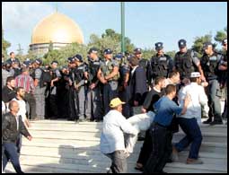 وقالت مصادر فلسطينية ان المئات من السكان العرب في القدس توافدوا صباح أمس الى المسجد الأقصى للاعراب عن احتجاجهم ازاء قيام شارون بزيارة المسجد الأقصى.