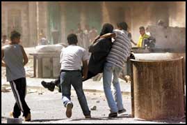 وذكر شهود عيان ان اكثر من مئتي فلسطيني ألقوا الحجارة على قوات الامن الاسرائيلية في قلب مدينة الخليل المقسمة وردت القوات الاسرائيلية بإطلاق اعيرة رصاص مغلفة بالمطاط.