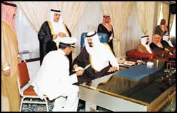 استقبل صاحب السمو الملكي الأمير عبدالله بن عبدالعزيز ولي العهد نائب رئيس مجلس الوزراء ورئيس الحرس الوطني بمكتب سموه برئاسة الحرس الوطني أمس جموعاً من المواطنين الذين قدموا للسلام على سموه وتهنئته بسلامة الوصول إلى الرياض.