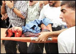 وأضاف ان هناك 18 اصابة خطيرة في الرأس والصدر وبعضها يعتبر في حالة موت سريري,, وان ما زاد في أعداد الاصابات استخدام اسرائيل الصواريخ والطائرات في قصف المواطنين والأماكن السكنية والمواقع الفلسطينية.