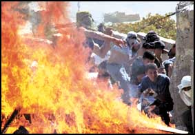 وفي خرق جديد لوقف اطلاق النار اطلق جنود اسرائيليون النار مرتين صباح أمس الخميس على متظاهرين فلسطينيين كانوا يرشقونهم بالحجارة قرب نتساريم قطاع غزة كما أفاد شهود عيان لم يتحدثوا في المقابل عن سقوط جرحى.