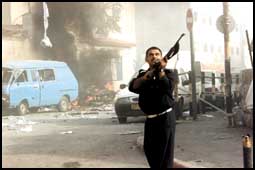 بعد أن فشلت اسرائيل في مواجهة الانتفاضة الفلسطينية بالأسلحة الرشاشة قامت أمس باستخدام المروحيات العسكرية وقصفت عدة مبان فلسطينية ومقار القيادات الفلسطينية في مدينة رام الله,, بما فيها مقر الرئيس عرفات.