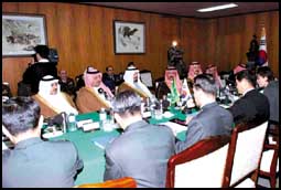 بناء على دعوة رسمية من حكومة جمهورية كوريا قام صاحب السمو الملكي الأمير سلطان بن عبدالعزيز النائب الثاني لرئيس مجلس الوزراء وزير الدفاع والطيران والمفتش العام في المملكة العربية السعودية بزيارة إلى جمهورية كوريا ابتداء من يوم الثلاثاء 20 رجب 1421ه الموافق 17 اكتوبر 2000م وحتى يوم الخميس 22 رجب 1421ه الموافق 19 اكتوبر 2000م, وقد استقبل سموه من قبل فخامة الرئيس السيد كيم داي جونغ رئيس جمهورية كوريا وجرت بينهما محادثات ايجابية ومثمرة, كما أجرى سموه محادثات مع كل من دولة رئيس الوزراء السيد لي هان دونق ومعالي رئيس المجلس الوطني السيد لي مان ساب ومعالي وزير الدفاع الوطني السيد تشو سيونج تي وكبار المسؤولين الكوريين, وقد تناولت تلك المحادثات العلاقات الثنائية والقضايا الاقليمية والدولية ذات الاهتمام المشترك,وعلى صعيد العلاقات الثنائية أشاد الجانبان بما تحقق في مختلف مجالات التعاون وأبدى الطرفان ارتياحهما لتنامي هذه العلاقات وتطورها, واتفق الجانبان على مواصلة تطوير التبادل التجاري وتشجيع قيام الاستثمارات والمشروعات المشتركة والتوسع في مجالات التعاون الاقتصادي والصناعي والتقني والفني وفي مجال البتروكيماويات, وأعرب الجانبان عن نيتهما ابرام اتفاقية حول التشجيع والحماية المتبادلة للاستثمارات في المستقبل القريب وكذلك ابرام اتفاقية تعاون بين الحكومتين في مجال النقل البحري واتفاقية لتحاشي الازدواج الضريبي.