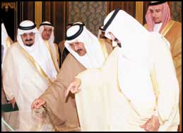 وحضر الاستقبال صاحب السمو الملكي الأمير مشعل بن عبدالعزيز وصاحب السمو الملكي الأمير نايف بن عبدالعزيز وزير الداخلية وصاحب السمو الملكي الأمير عبدالاله بن عبدالرحمن بن ناصر بن عبدالعزيز.