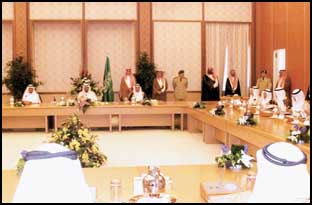 رأس صاحب السمو الملكي الامير عبدالله بن عبدالعزيز ولي العهد نائب رئيس مجلس الوزراء ورئيس الحرس الوطني ورئيس المجلس الاقتصادي الاعلى الاحد 9/8/1421ه الموافق 5/11/ 2000م اجتماع المجلس الاقتصادي الاعلى الذي عقد بمقر المجلس في قصر اليمامة بمدينة الرياض بحضور صاحب السمو الملكي الامير سلطان بن عبدالعزيز النائب الثاني لرئيس مجلس الوزراء ووزير الدفاع والطيران والمفتش العام ونائب رئيس المجلس الاقتصادي الاعلى واصحاب المعالي الوزراء اعضاء المجلس واعضاء الهيئة الاستشارية للشؤون الاقتصادية.