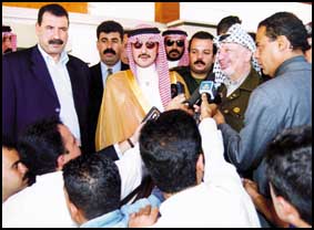 بدعوة رسمية من فخامة رئيس السلطة الفلسطينية السيد ياسر عرفات توجه يوم الثلاثاء 7 نوفمبر 2000 صاحب السمو الملكي الامير الوليد بن طلال بن عبدالعزيز آل سعود رئيس مجلس ادارة شركة المملكة القابضة الى قطاع غزة للقاء الرئيس ياسر عرفات.