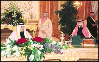من جهة اخرى أطلع الملك المفدى المجلس على نتائج مباحثاته التي شهدتها العاصمة السعودية مع أخيه فخامة الرئيس ياسر عرفات رئيس دولة فلسطين الشقيقة والتي تصب جملة وتفصيلا في صالح القضية العربية الاسلامية الاولى التي ما برحت المملكة تقدم لها كل اشكال الدعم والمساندة منذ عهد جلالة الملك عبدالعزيز رحمه الله وما يزال هذا الدعم منتظما إلى اليوم وسيتواصل بحول الله حتى يتحقق للاخوة في فلسطين نيل حقهم الكامل في العودة إلى ديارهم وفي اقامة دولتهم المستقلة على ترابهم الوطني وعاصمتها القدس.