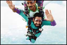 واضاف قائلا: ان الامريكان هناك لم يتوقعوا اطلاقا ان تكون لدي الشجاعة للاقدام على خطوة كهذه ولكن وبتوفيق من الله عز وجل ثم بدعم من مدربي القدير وبالعزيمة والاصرار خضت هذه التجربة الجريئة باطمئنان وثقة ولا اخفيك كان هناك مخاوف بسيطة في البداية زالت تماما بعد تحليقنا في الجو.
