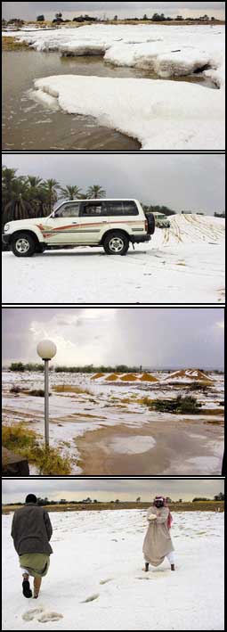 كما سقطت على محافظة بقعاء امس الاول كتل ثلجية بكميات كبيرة اثناء هطول الامطار الغزيرة على المحافظة وتغطت الارض بكاملها باللون الأبيض وبقيت اشبه ماتكون بالمرتفعات الثلجية في اوروبا، وبعد توقف الامطار وسقوط الثلوج توجه المواطنون الى موقع الثلوج في الهملان جنوب المحافظة، واخذ مجموعة من الشباب يتزلجون على الجليدوسط اختلاط الامطار وغيوم السماء في جو جميل خصوصاً في مخطط الشرقية..