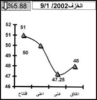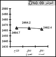 ارتخت قطاعات الشركات خلال التعاملات أمس لينخفض بشدة حجم التداول والقيمة السوقية والتي بلغت 157،1 مليون سهم وصلت كلفتها 168 مليون ريال وكانت ابرز الشركات الصاعدة مبرد 1،4% إلى 75،50 ريالاً مع قرب تجزئة السهم إلى 50 ريالاً وتحركت الاسماك 4% إلى 56 ريالاً بينما كانت ابرز الشركات المتراجعة الخزف 6% إلى 48 ريالاً ومكة 5% إلى 242 ريالاً بعد نزع الارباح 12 ريالاً للعام الماضي وكهرباء الجنوبية 4% إلى 5،76 ريالاً في تداول متواضع وانتهى المطاف بالمؤشر خاسراً قرابة نقطتين ليغلق عند مستوى 44،2462 نقطة.