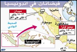 أدت الفيضانات العارمة الناجمة عن الأمطار الغزيرة التي تهطل على مختلف مناطق إندونيسيا منذ الليلة قبل الماضية وحتى صباح أمس الاثنين إلى مصرع ثلاثة أشخاص واعتبار عشرة آخرين في عداد المفقودين في مدينة ميدان بسوماطرة الشمالية.وقد أدت الأمطار الغزيرة إلى إصابة حركة المرور في بعض شوارع العاصمة جاكرتا بحالة من الشلل بعد ان غمرت المياه الكثير من الشوارع وحالت دون وصول الموظفين إلى مقار اعمالهم والطلبة عن التوجه لمدارسهم.وقد أصيب اليوم عشرات الاشخاص على الطريق السريع الذي يربط بين العاصمة جاكرتا ومدينة بوجور اثر انزلاق سيارة اوتوبيس مكتظة بالركاب بسبب الأمطار الغزيرة والسرعة وخروجها على الطريق.وفي مدينة ميدان عاصمة سوماطرة الشمالية تم اغلاق مطار بولونيا بالمدبنة امام حركة اقلاع وهبوط الطائرات امس الاثنين بسبب هطول الأمطار الغزيرة على اقليم سوماطرة الشمالية والتي استمرت منذ الليلة قبل الماضية وحتى صباح الاثنين.