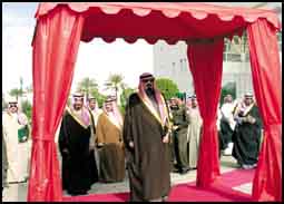 نيابة عن خادم الحرمين الشريفين الملك فهد بن عبدالعزيز حفظه الله يرعى صاحب السمو الملكي الأمير عبدالله بن عبدالعزيز ولي العهد ونائب رئيس مجلس الوزراء ورئيس الحرس الوطني بمشيئة الله تعالى حفل افتتاح دورة كأس الخليج العربي الخامسة عشرة لكرة القدم الذي يقام مساء اليوم الاربعاء على استاد الملك فهد الدولي بالرياض.