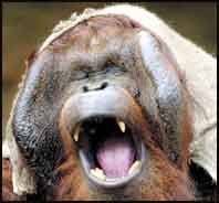 في جو شديد البرودة يتثاءب هذا القرد المسمى «جوني» وهو من فصيلة (انسان الغاب) بعد أن نجح في الحصول على بطانية تمنحه شيئاً من الدفء وهو ينتظر وصول الزوار الذين منعهم البرد القارس الخروج لحدائق الحيوان.