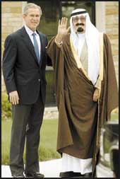 وفي بداية الاجتماع نقل صاحب السمو الملكي الأمير عبدالله بن عبدالعزيز تحيات وتقدير أخيه خادم الحرمين الشريفين الملك فهد بن عبدالعزيز آل سعود حفظه الله لفخامة الرئيس جورج دبليو بوش ولحكومة وشعب الولايات المتحدة الأمريكية الصديق.