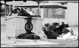 لاتزال حاويات جمع النفايات تعاني من تكدس كميات كبيرة من أكياس النفايات التي وضعها أصحاب المنازل في انتظار عمال شركة النظافة التي أصبحت مواعيدها عرقوبي.........