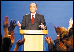 فاز الرئيس الفرنسي جاك شيراك أمس الأحد بولاية ثانية لرئاسة الجمهورية الفرنسية بأغلبية تراوحت مابين 7. 81 و5. 82% من الأصوات مقابل ما بين 5. 17 و3. 18%.........